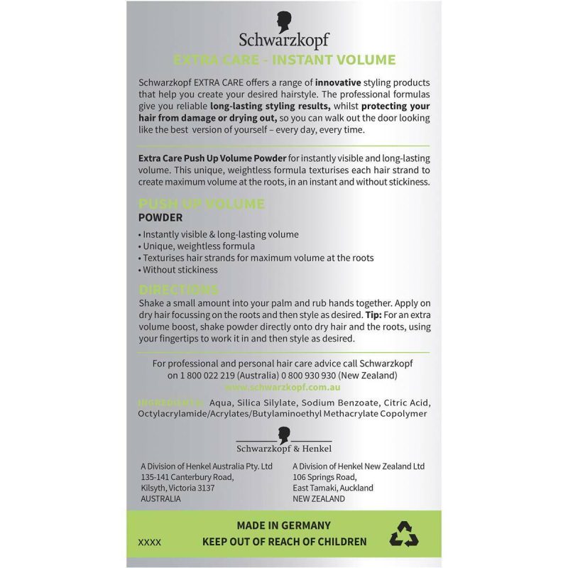 Elevate your hair styling game with Schwarzkopf Extra Care Hair Powder Instant Volume Styling. This versatile powder provides instant volume and texture to your hair, allowing you to create dynamic and bold styles. The lightweight formula is easy to apply and provides a matte finish. Give your hair the lift it deserves with this volume-enhancing powder.