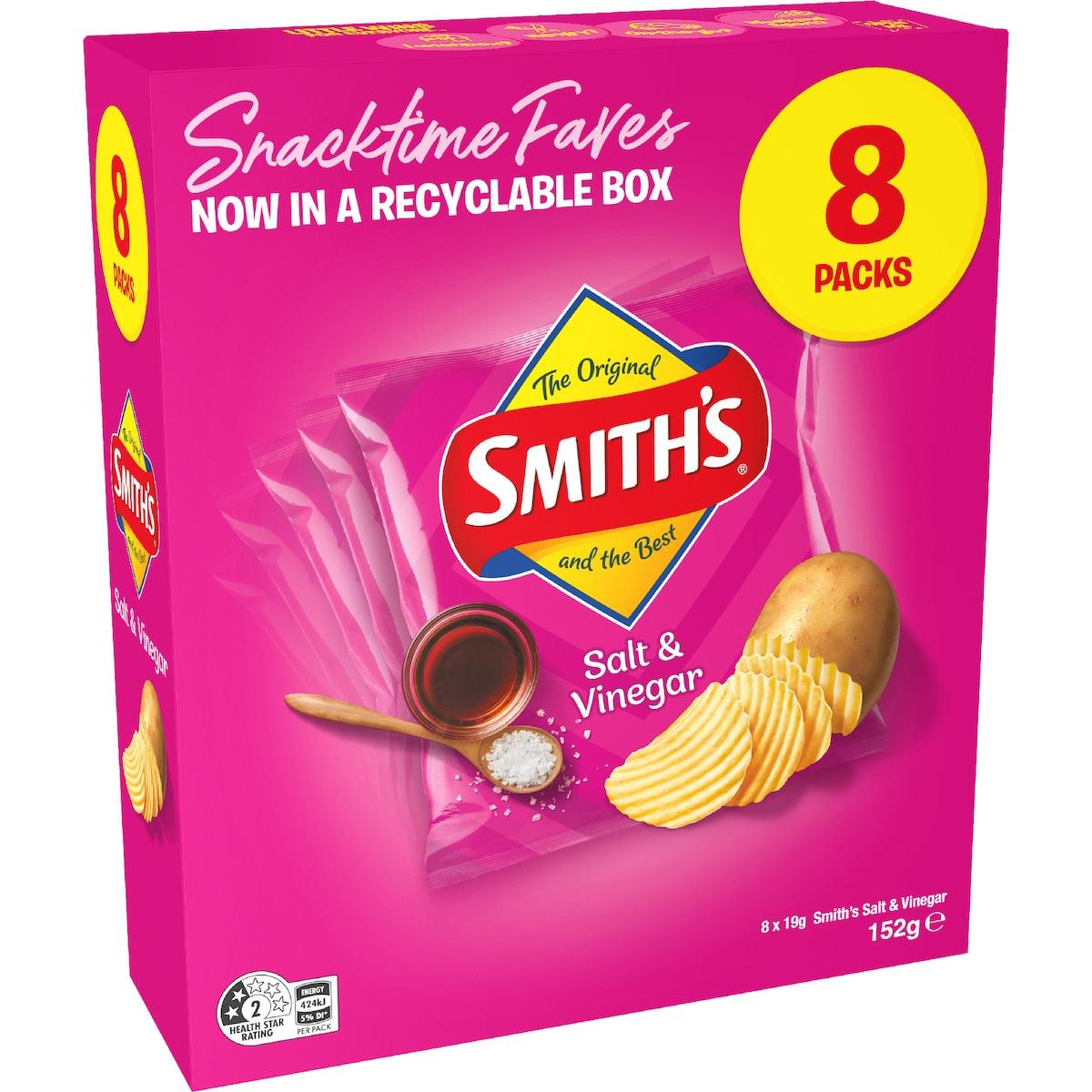 Smiths Potato Chips Salt And Vinegar Multipack 8 Pack 152g