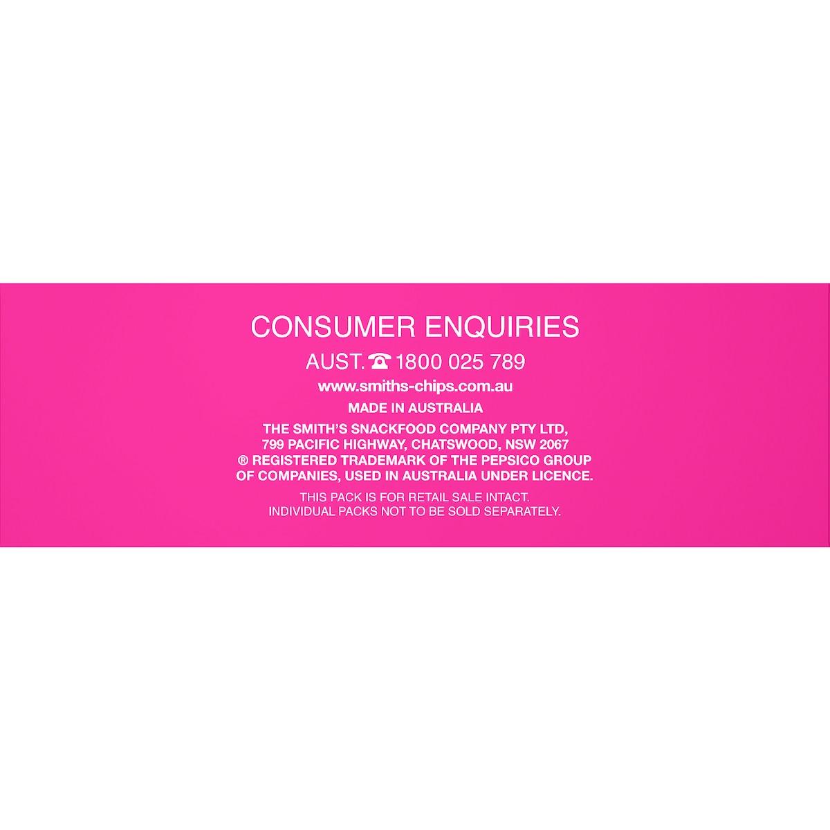 Snack smart and tangy with Smiths Potato Chips Salt and Vinegar Multipack 8 Pack 152g, the perfect companion for your busy lifestyle.