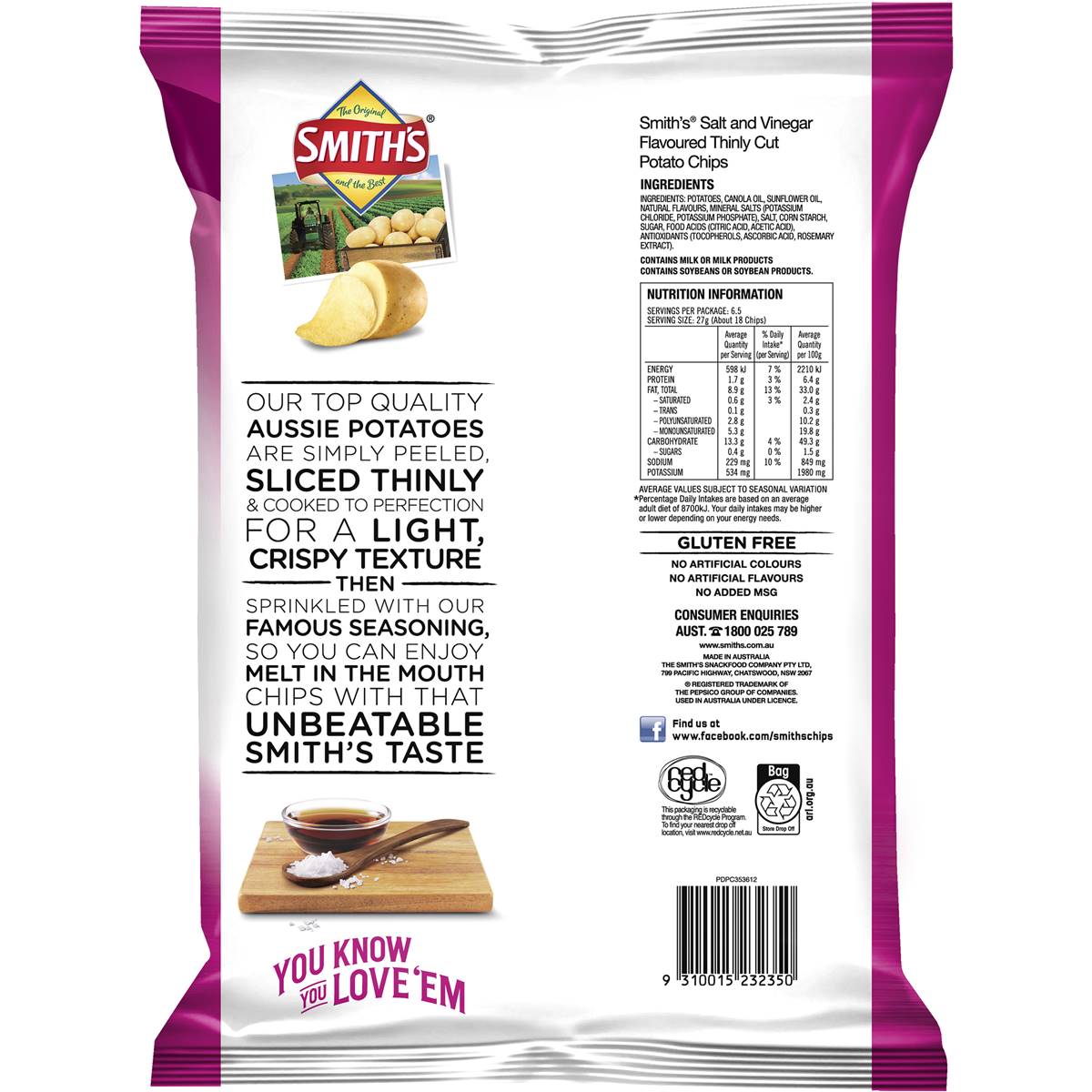Smiths Thinly Cut Salt and Vinegar Potato Chips Pack 175g