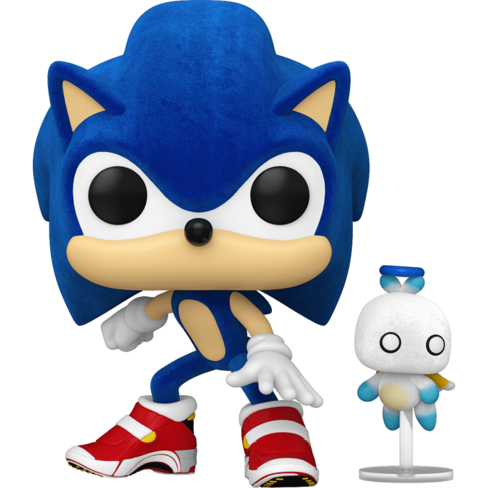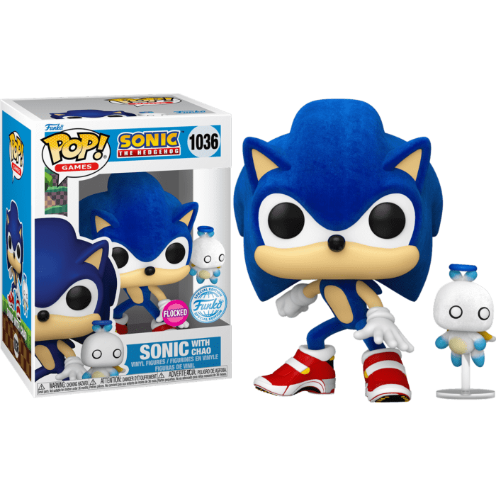 Join the speedy adventures of Sonic the Hedgehog with the Sonic With Chao Flocked Pop! Vinyl #1036. This unique collectible features Sonic, the beloved blue hedgehog, alongside his adorable Chao friend. What sets this Pop! Vinyl apart is its flocked texture, adding a soft and fluffy feel that perfectly captures the playful spirit of these iconic characters from the Sonic universe.