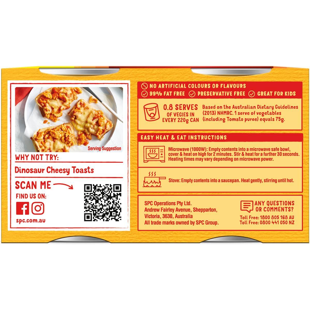 Each 220g can is a generous serving, making it a convenient choice for a quick and enjoyable meal. The playful Spag-a-saurus theme adds a touch of excitement to every bite, making it a hit with both kids and the young at heart.