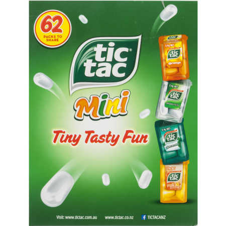 Delight in the refreshing and invigorating taste of Tic Tac Mini Variety Mint Pack. This pack contains 62 individual packs of Tic Tac mints, each featuring a blend of minty flavors, including cool mint, orange, peach, and passion fruit. With their iconic small size and convenient packaging, these mints are perfect for freshening your breath on the go, enjoying after a meal, or sharing with friends and family. Experience the burst of coolness and fruitiness that Tic Tac is known for and savor the assortment of flavors that add a fun and flavorful twist to your everyday moments.