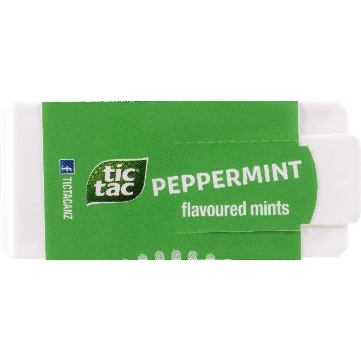 Experience the crisp, cool taste of Tic Tac Peppermint Flavoured Mints—your perfect companion for on-the-go freshness!