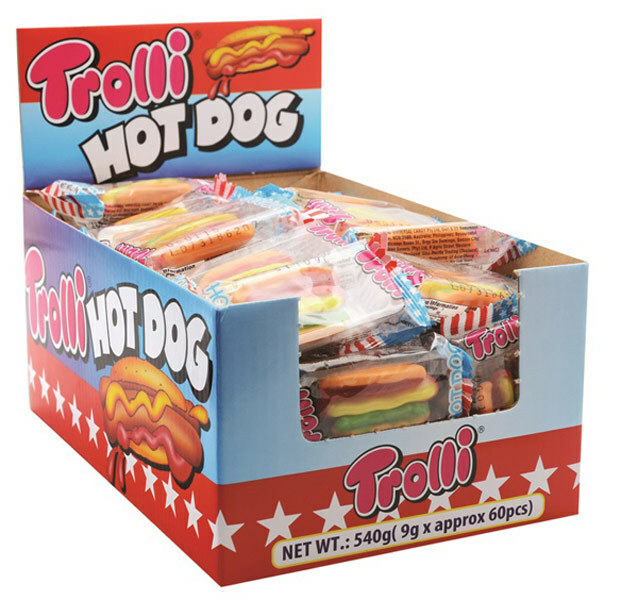 Trolli Gummi Sausage Hot Dog Candy Lollies Box for Kids 9g X 60 Hot Dogs
