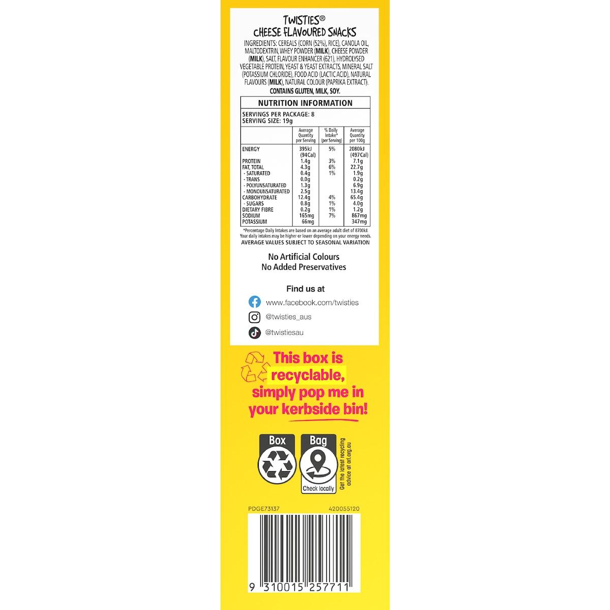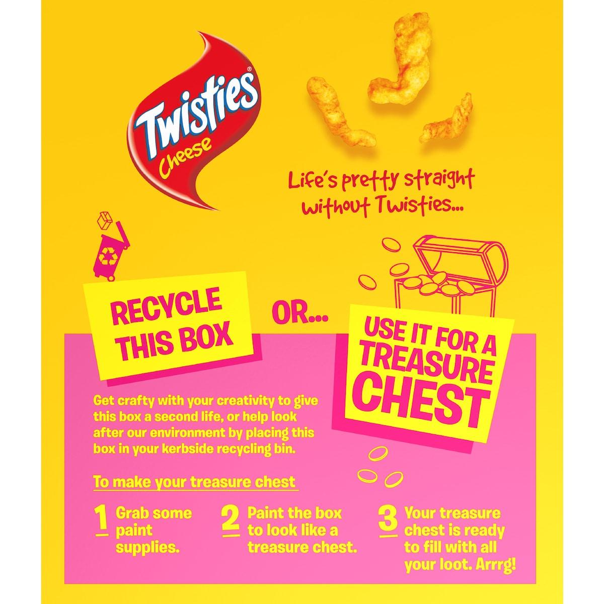 Iconic Twisties cheesy flavour with a fun twisty shape