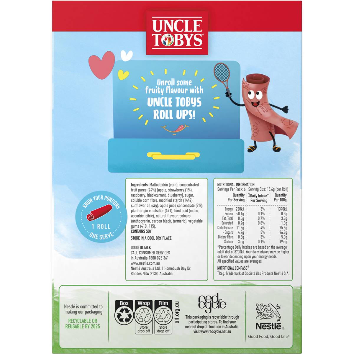 Uncle Tobys Roll Ups Strawberry Kids Fruit Chewy Snacks 6 Pack