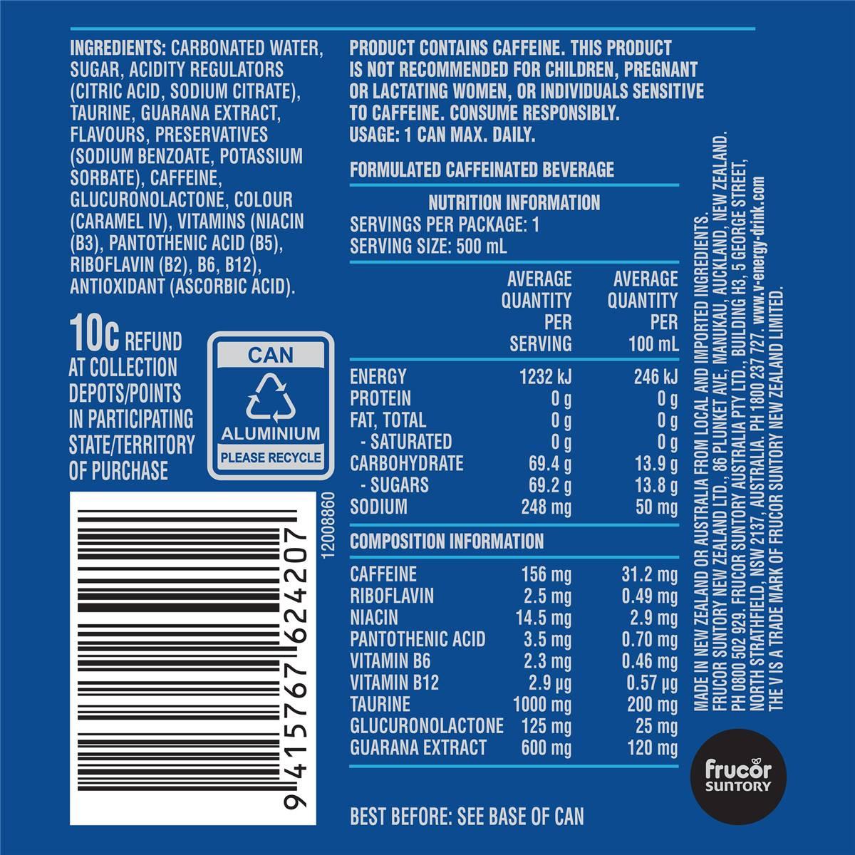 Introducing the V Blue Guarana Energy Drink Can in an exhilarating 500ml size, a game-changer for those who crave an extended surge of energy. This larger can packs a punch with a dynamic blend of flavors and the natural boost of guarana, setting it apart as the ultimate companion for your active lifestyle.