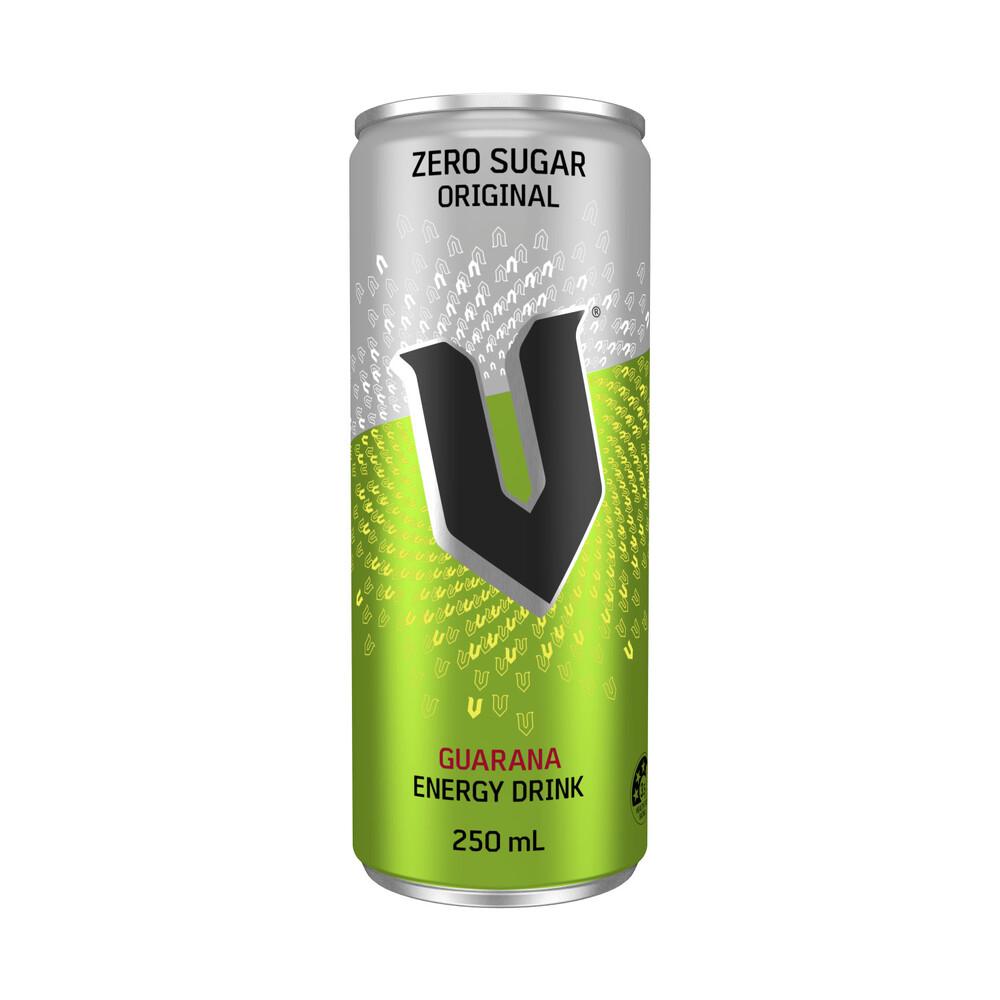 Fuel your day with V Sugar-Free Guarana Energy Drink Can 250ml X 4 Pack – where bold flavor meets health-conscious energy. Embrace the natural taste without compromise and redefine your energy experience with this convenient pack.