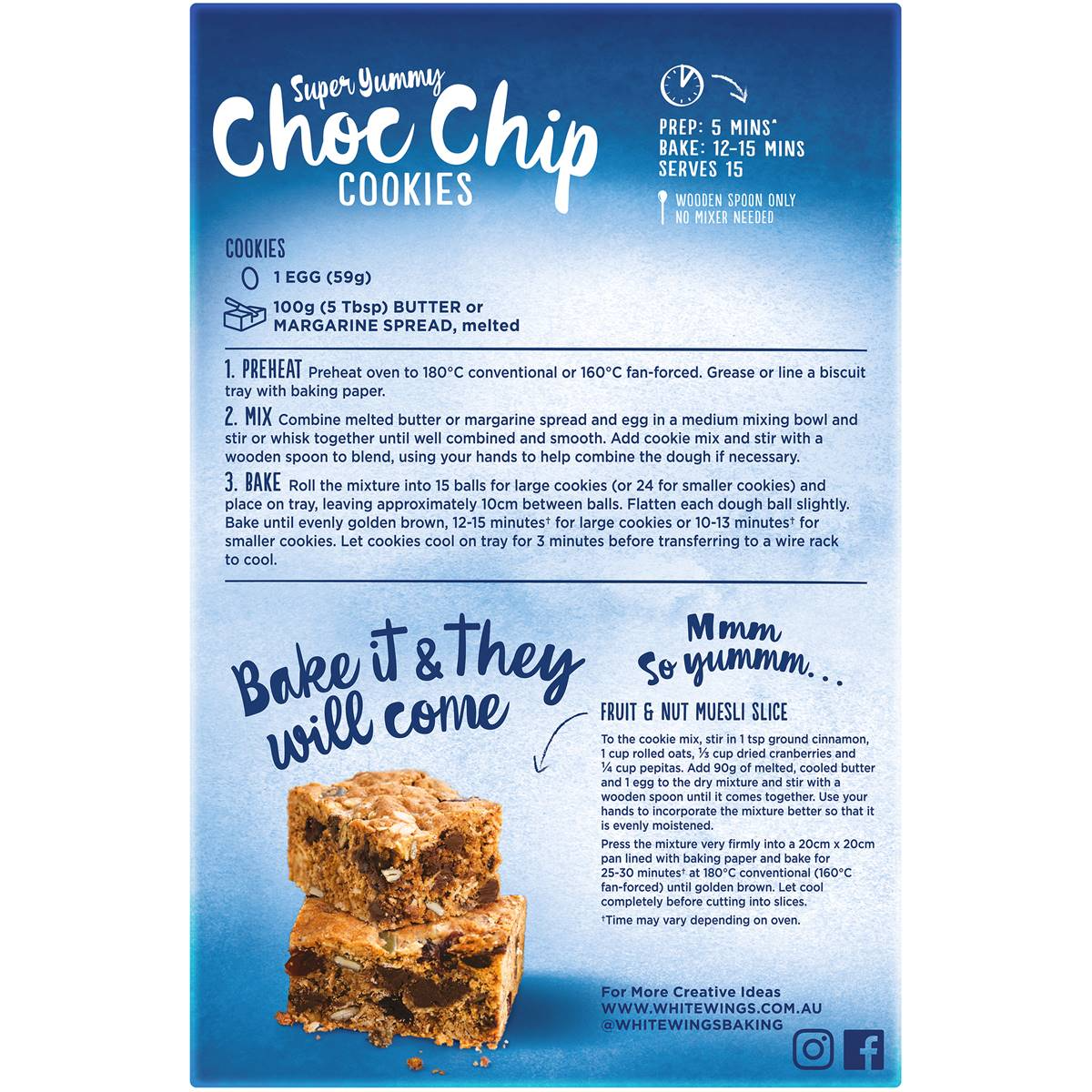 White Wings Chocolate Choc Chip Cookies Baking Mix 485g