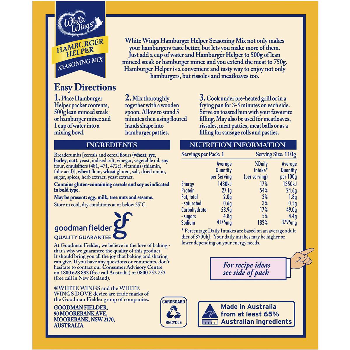 White Wings Hamburger Seasoning Mix 110g