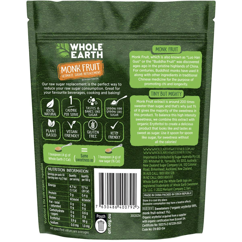 Whole Earth Monk Fruit Organic Raw Sugar Replacement Powder 200g