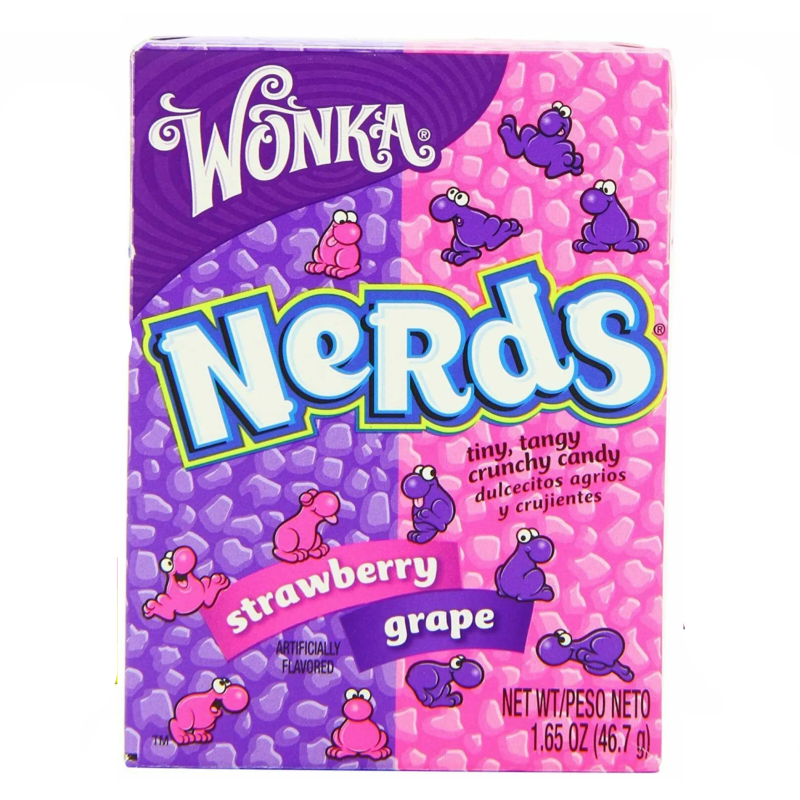 Embark on a flavorful journey with Wonka Nerds in Strawberry and Grape. This box contains 36 individual packs, each offering a delightful blend of sweet strawberry and luscious grape flavors in crunchy candy form. Crafted with care, these Nerds are perfect for satisfying your sweet cravings, sharing with friends, or adding a touch of whimsy to events. Whether you’re savoring the flavors one by one or enjoying them together, Wonka Nerds Strawberry and Grape bring a burst of vibrant and nostalgic candy joy. Embrace the playfulness and creativity of Nerds and relish the moments of sweet delight they bring.