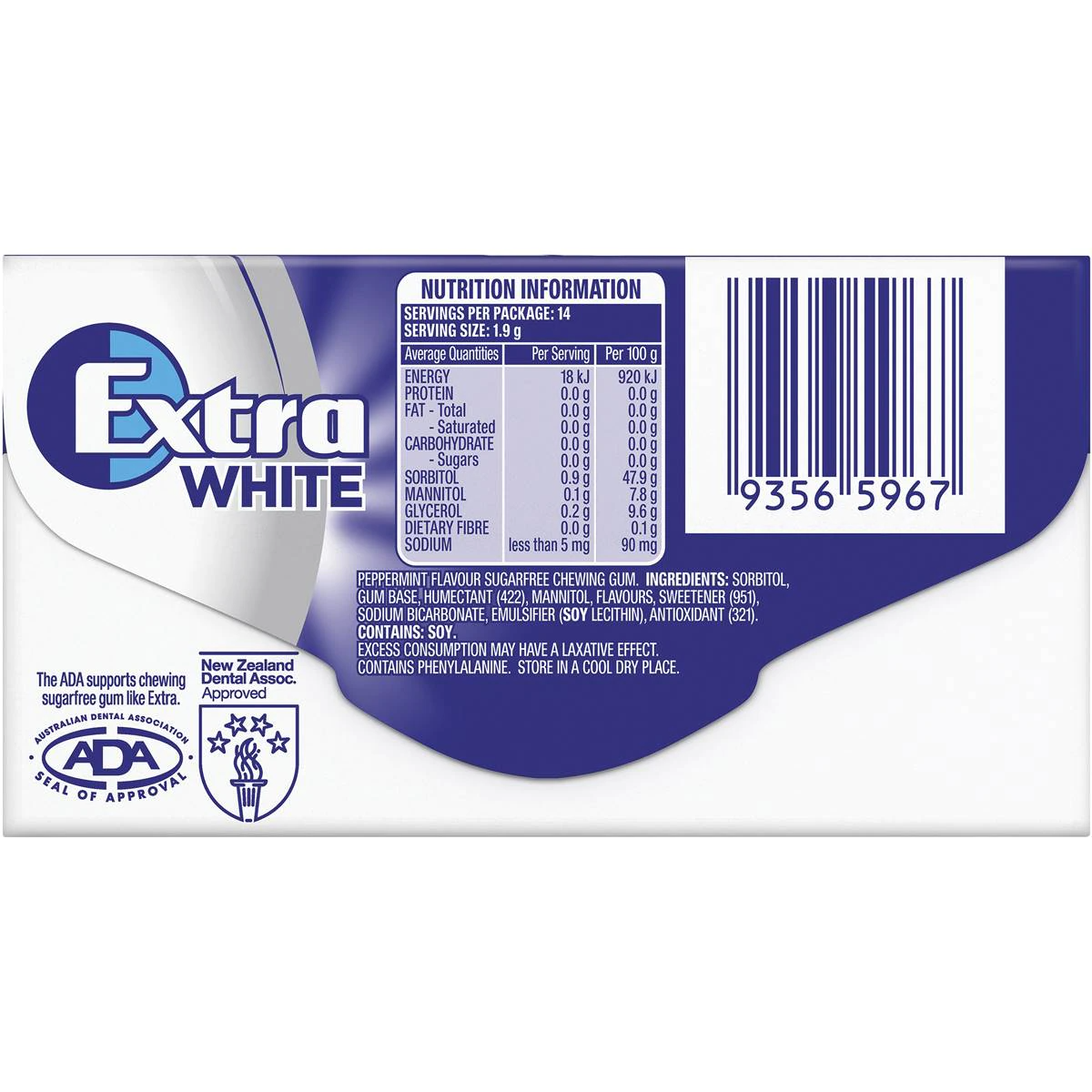 Wrigleys Extra Chewing Gum White Peppermint 14 Pieces X 24 Pack