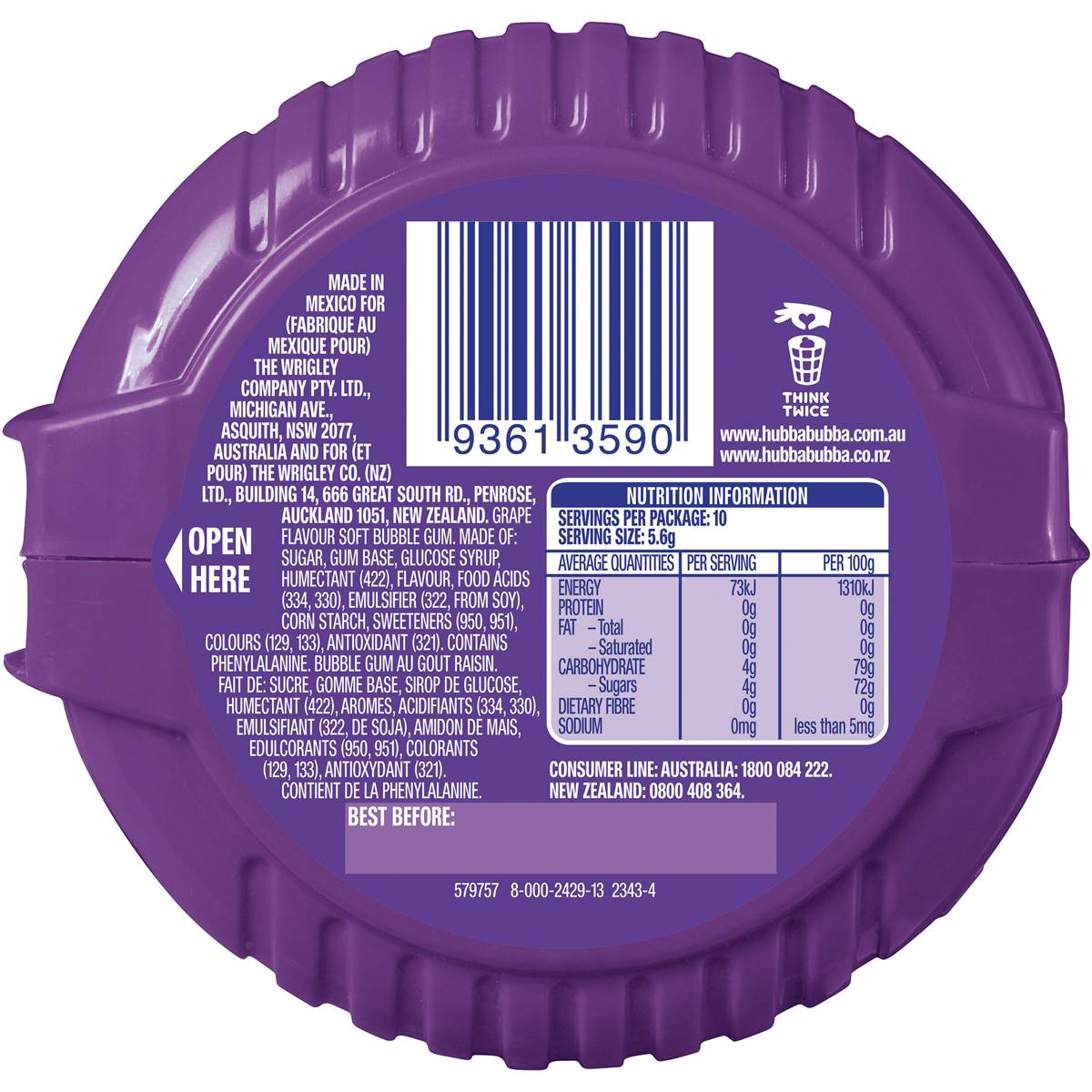 Wrigleys Hubba Bubba Bubblegum Chewing Gum Bubble Tape Grape x 2 Rolls