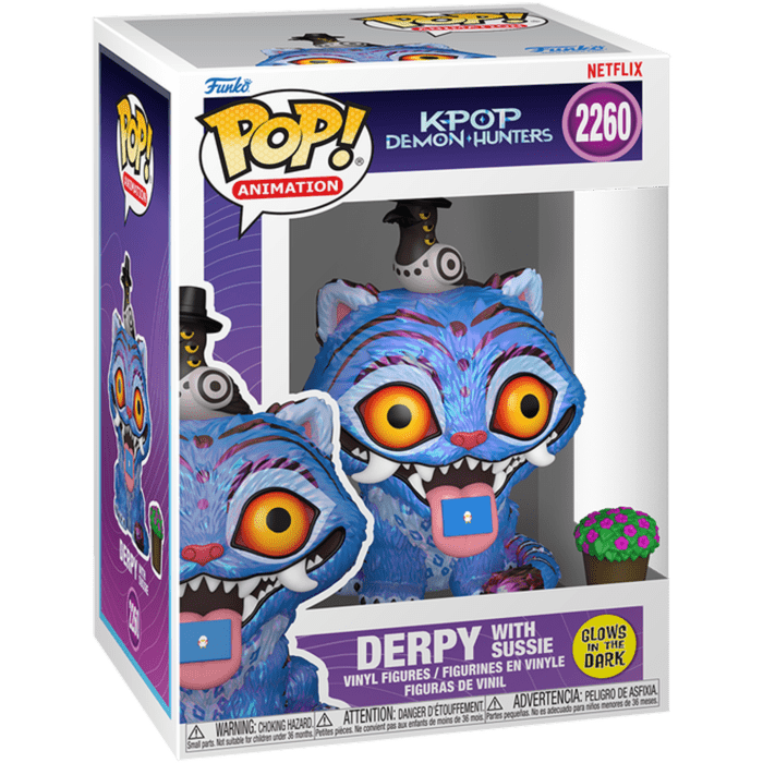 Add a little chaos and glow-powered charm to your collection with the KPop Demon Hunters Derpy with Sussie Glow Pop! Vinyl #2260!