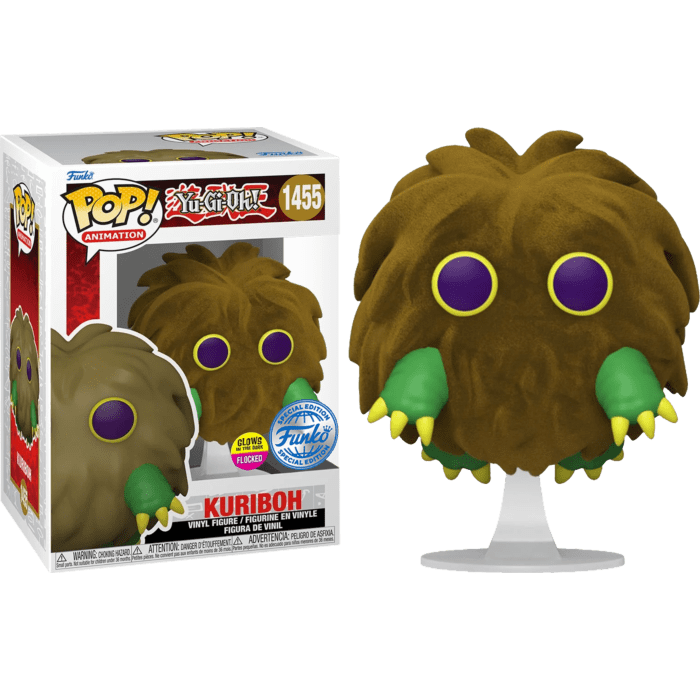 Standing at approximately 4 inches tall, the Kuriboh Flocked Glow Pop! Vinyl Figure is a sight to behold. With its flocked texture, this figure not only looks fantastic but also feels incredible to the touch, adding an extra layer of tactile enjoyment for collectors and fans alike. The flocked texture mimics the softness of Kuriboh’s fur, making it an even more immersive experience.