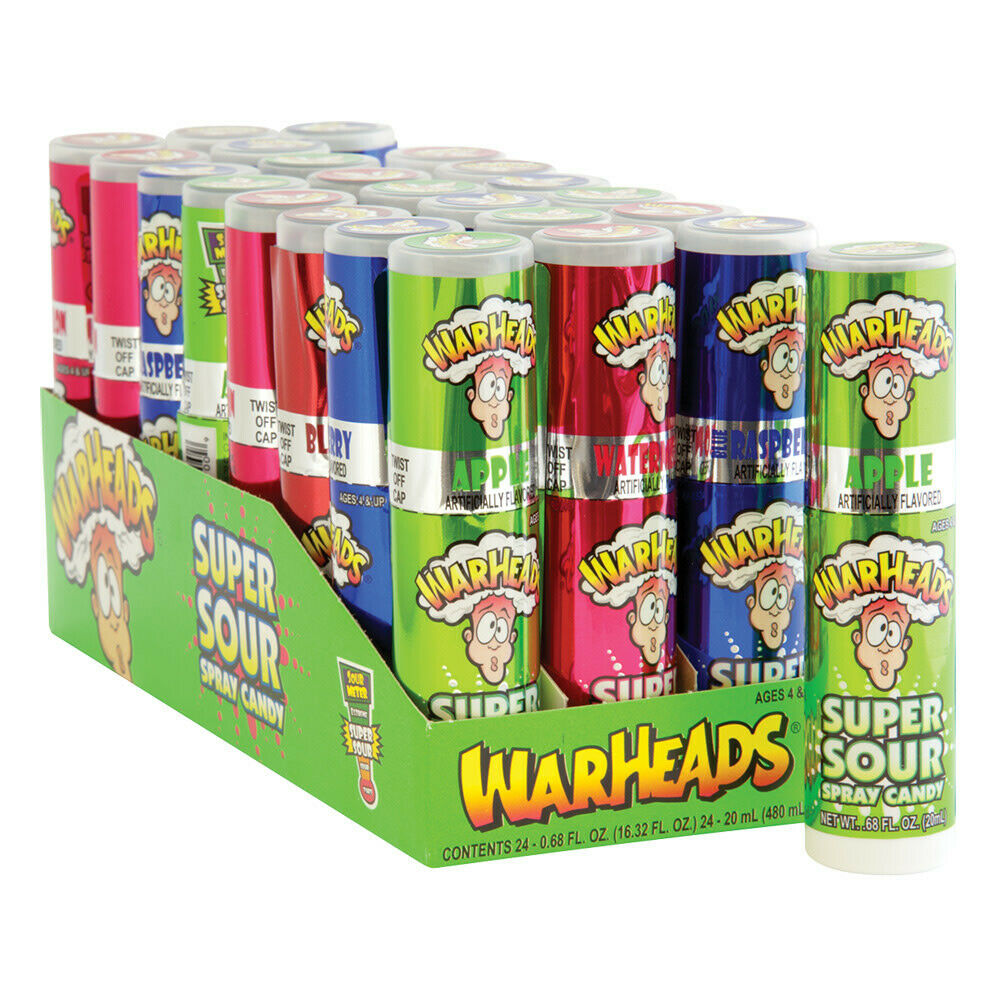 Dive into a world of extreme sourness with Warheads Super Sour Spray Candy. This pack contains 24 units of intensely sour spray candy in convenient bottles. With a variety of tangy flavors, each spray delivers a burst of sourness that’s sure to make your taste buds tingle. Whether enjoyed on its own or used to create unique flavor experiences, Warheads Super Sour Spray Candy offers a bold and exciting candy adventure. Experience the extreme sour sensation that Warheads is famous for and embrace the challenge of each sour spray as you explore the playful and thrilling world of sour candy.