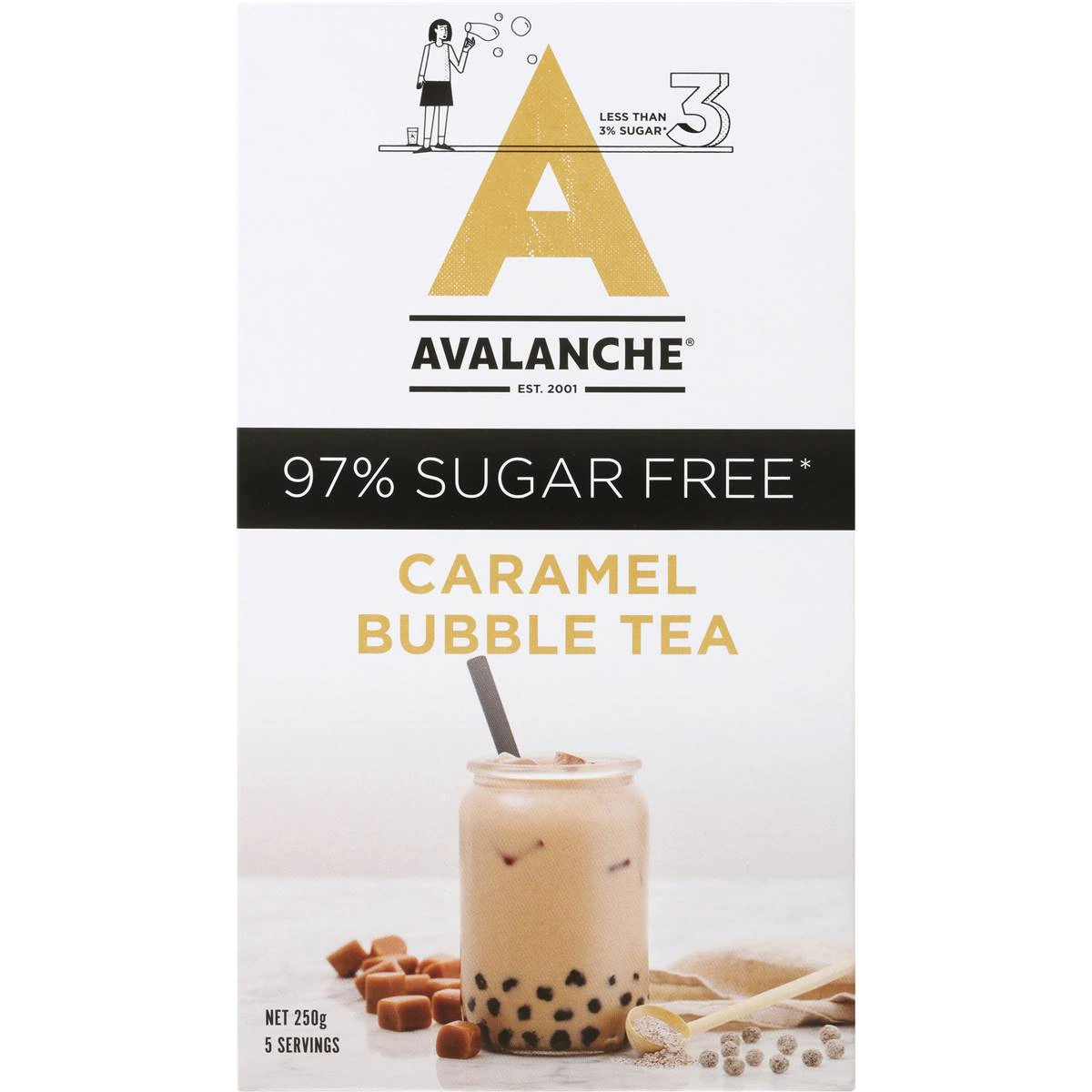 Indulge in the rich and velvety flavors of Avalanche Sugar Free Caramel Bubble Tea Sachets. This 5-pack kit includes sachets that infuse the essence of caramel with the chewy pearls of bubble tea, offering a guilt-free and decadent beverage experience. Whether you’re a caramel connoisseur or looking for a luxurious treat, Avalanche Sugar Free Caramel Bubble Tea Sachets provide a convenient and enjoyable way to enjoy the essence of bubble tea at home. Elevate your beverage experience with the luscious and sugar-free taste of caramel bubble tea.