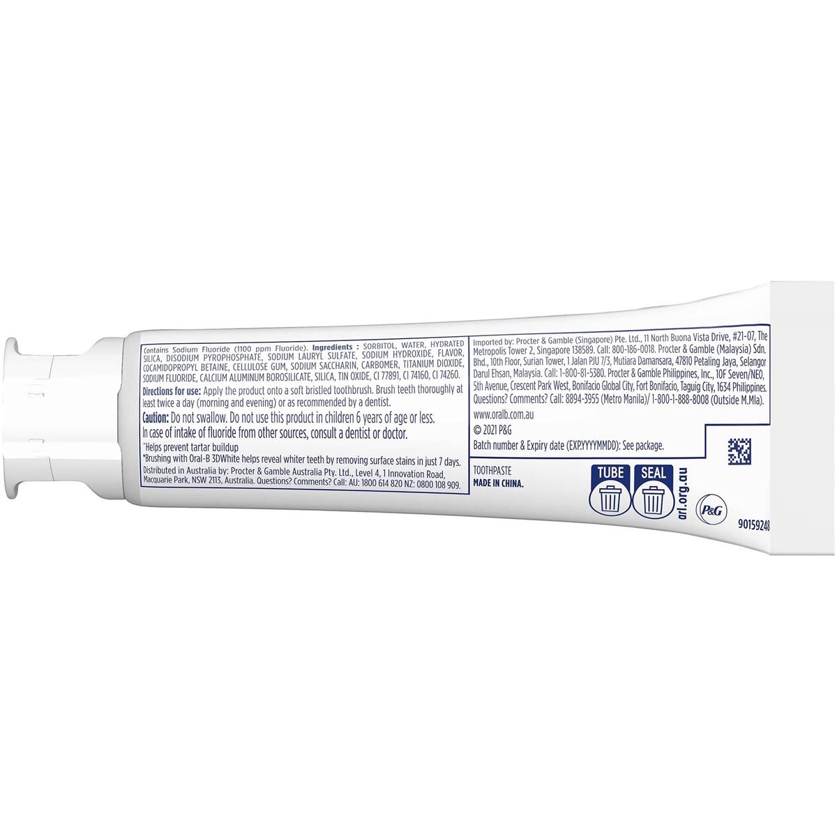 Achieve a whiter smile while preventing tartar buildup with Oral B 3D White Whitening Toothpaste with Tartar Control. This toothpaste is specially formulated to gently remove surface stains and prevent the formation of tartar. The advanced formula contains micro-cleansing agents that help lift away stains, revealing a brighter and healthier smile. The mint flavor adds a refreshing and invigorating touch to your oral care routine. Oral B 3D White Whitening Toothpaste with Tartar Control offers a comprehensive solution that enhances your smile’s whiteness while promoting optimal oral health. Enjoy a cleaner, fresher, and more radiant smile with each use.